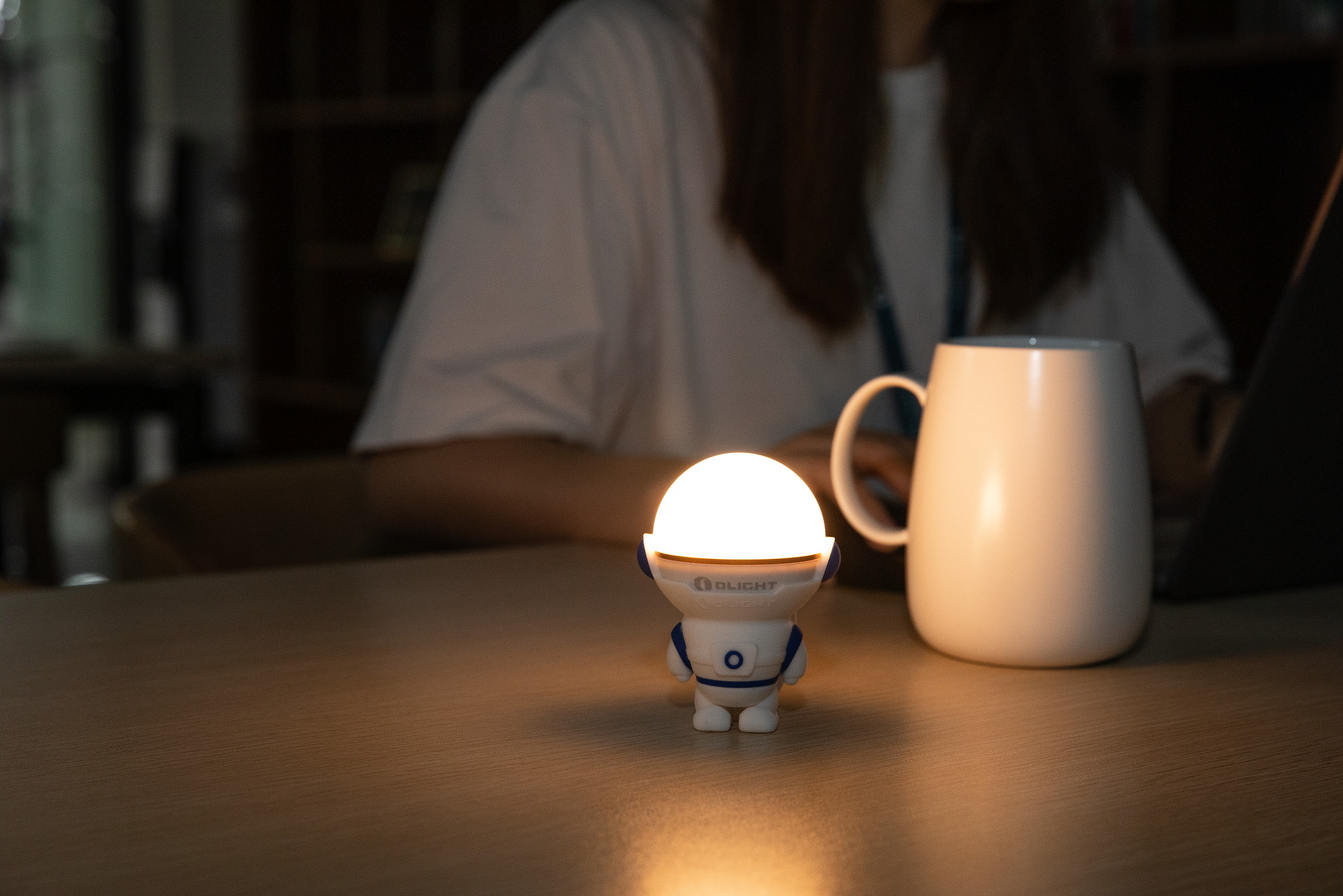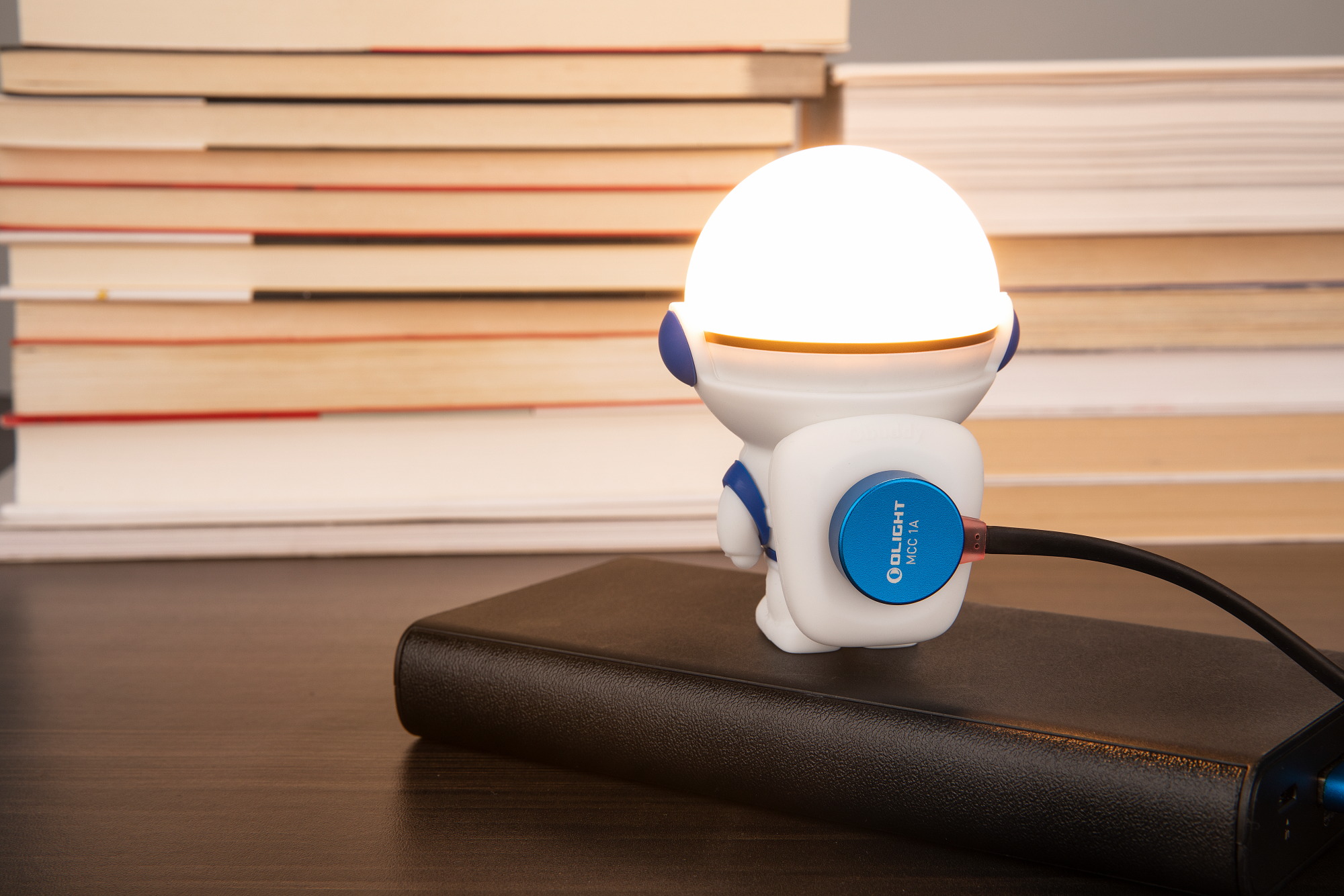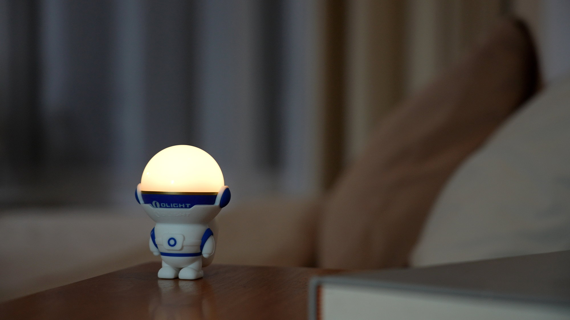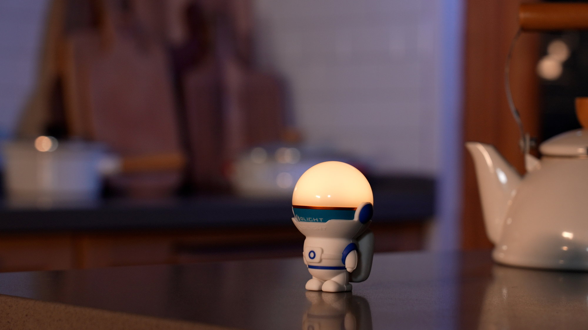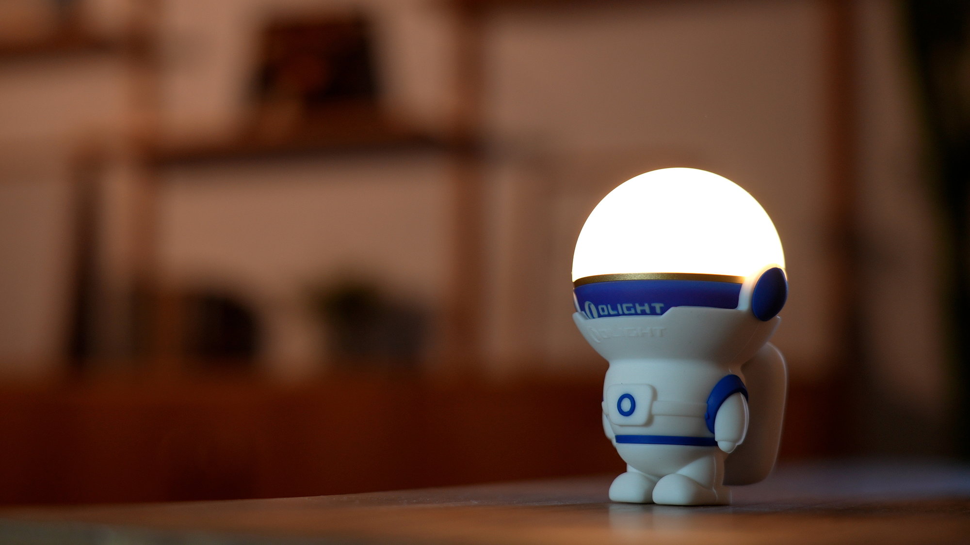 Nabíjateľný držiak na lampášik Obulb Olight Obuddy Astro Blue – figúrka
