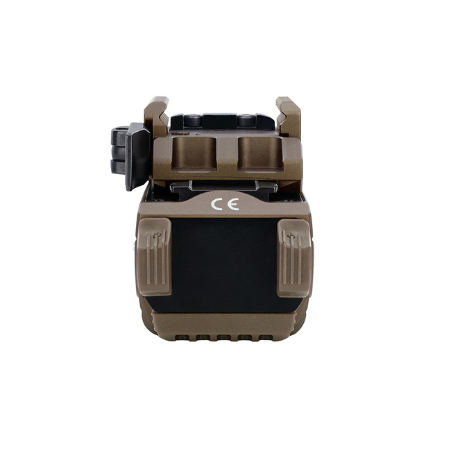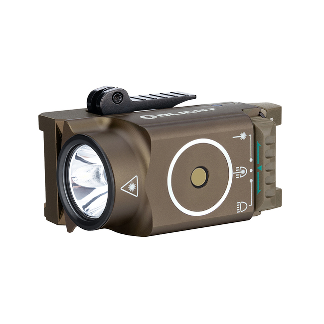 Baterku zapíname pohodlným krídlovým spínačom umiestneným vzadu. Vypínač je obojstranný, vďaka čomu môžu baterku pohodlne používať praváci aj ľaváci. Svietidlo je vybavené schopnosťou prepnúť na iba laser, laser a svetlo alebo len svetlo.