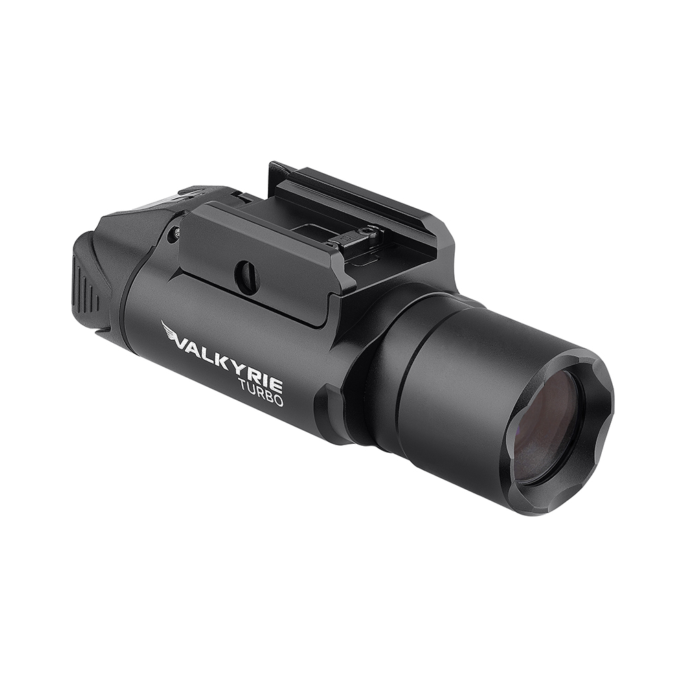 Svetlo na zbraň Odin Valkyrie Turbo predstavuje profesionálnu taktickú baterku na zbraň so zdrojom LEP svetla. LEP technológia umožňuje, že dosah 530 metrového bieleho lúča má veľmi malý rozptyl, a preto je vhodné na osvetlenie do diaľky alebo pri osvetľovaní terča. Ide o vysokokvalitné svetlo, ktoré predstavuje efektívnu pomôcku kompatibilnú s krátkymi zbraňami. Svetlo disponuje výkonom 250 lúmenov a dosahom lúča až 530 metrov. Obojstranný spínač umožňuje rýchle aktivovanie stroboskopu.