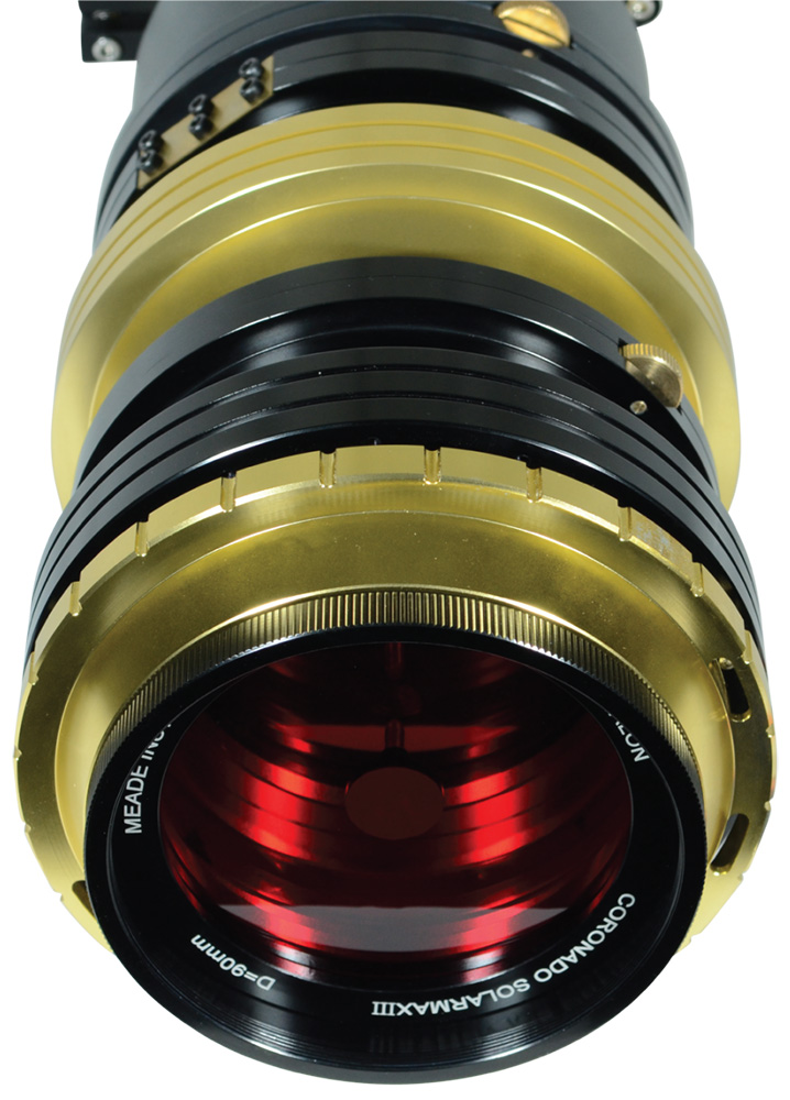 Nová rada teleskopov Coronado 90 mm SolarMax III s pokročilým zaostrovačom s ozubeným kolom a pastorkom a veľkým externým etalónom (etalónmi) je teraz dokonalým spôsobom, ako si prezrieť Slnko! SM3 90 mm sa dodáva s okulármi CEMAX veľkosti 12 mm, 18 mm 25 mm, Barlowovou šošovkou 2x CEMAX, solárnym hľadáčikom Sol Ranger, montážnou lištou rybiny typu vixen a úplne novým čierno-zlatým pevným hliníkovým prenosným puzdrom (rozmery: 67 x 22 x 22 cm).