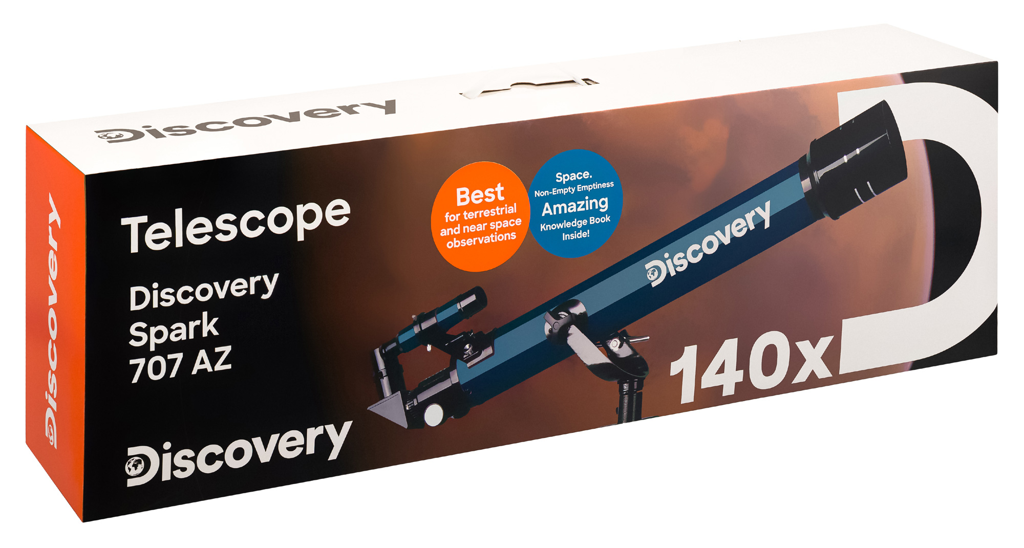 Hviezdny teleskop Levenhuk Discovery Spark 707 AZ je založený na achromatickej refraktorovej schéme, čo znamená, že obraz sa vytvára bez farebného skreslenia. Vonkajšie plochy sklenených šošoviek sú potiahnuté antireflexnou vrstvou: to pomáha systému zachytiť viac svetla, čím sa zabezpečuje vysoká kvalita obrazu v celom zornom poli. Alt-azimutálny držiak sa ľahko ovláda a vertikálna os je vybavená aretačným gombíkom na presné nastavenie. Zaostrovanie sa nastavuje pomocou okulárového výťahu s ozubeným kolieskom. Vďaka štandardnému priemeru 1,25" je teleskop na pozorovanie hviezd kompatibilný s rôznym optickým príslušenstvom.
