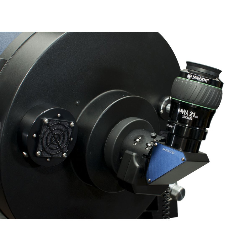 Advanced Coma-free Optics (ACF): Das optische Design ACF von Meade unterdrückt die typischen Abbildungsfehler aller Spiegel-Optiken. Die Sterne sind dank ACF auch am Rand des Bildfeldes punktförmig, zeigen also keine längliche Verzerrungen, die an Kometen erinnern. Das Bildfeld ist flacher als bei klassischen Schmidt-Cassegrain-Teleskopen. Insbesondere in der astrofotografischen Anwendung spielt die ACF-Optik ihre Stärken aus.