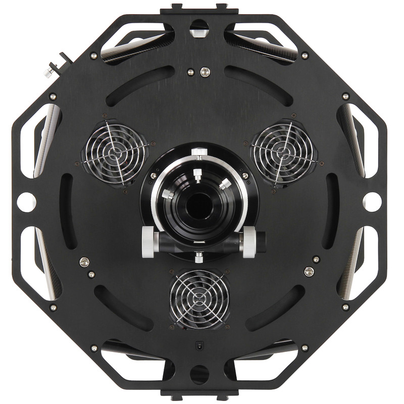Tiché, nenápadné bzučanie, ale veľký účinok: integrovaný 12 V ventilátor zabezpečuje, že sa vaše primárne zrkadlo ochladí až o 50 % rýchlejšie. Vďaka tomu váš teleskop rýchlejšie dosiahne optimálnu kvalitu obrazu. Už nemusíte čakať.