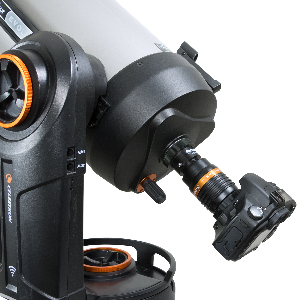 Ak sa zaujímate o astrofotografiu, NexStar Evolution je vynikajúci a cenovo dostupný spôsob, ako začať. Je to jediný rad vidlicových teleskopov v tejto cenovej kategórii so šnekovým pohonom spolu s vylepšenými motormi. Planetárna fotografia s digitálnou zrkadlovkou alebo planetárnym fotoaparátom, ako je NexImage alebo Skyris, nie je žiadnym problémom a s polárnou výškovou kolískou ho môžete nastaviť aj ekvatoreálne na zachytenie snímok hlbokej oblohy s dlhou expozíciou, či už s digitálnou zrkadlovkou, alebo nočnou astrofotografiou.