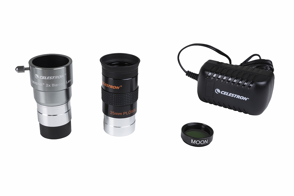 - 2x Barlowova šošovka, zdvojnásobuje ohniskovú vzdialenosť na vizuálne pozorovania alebo fotografovanie planét