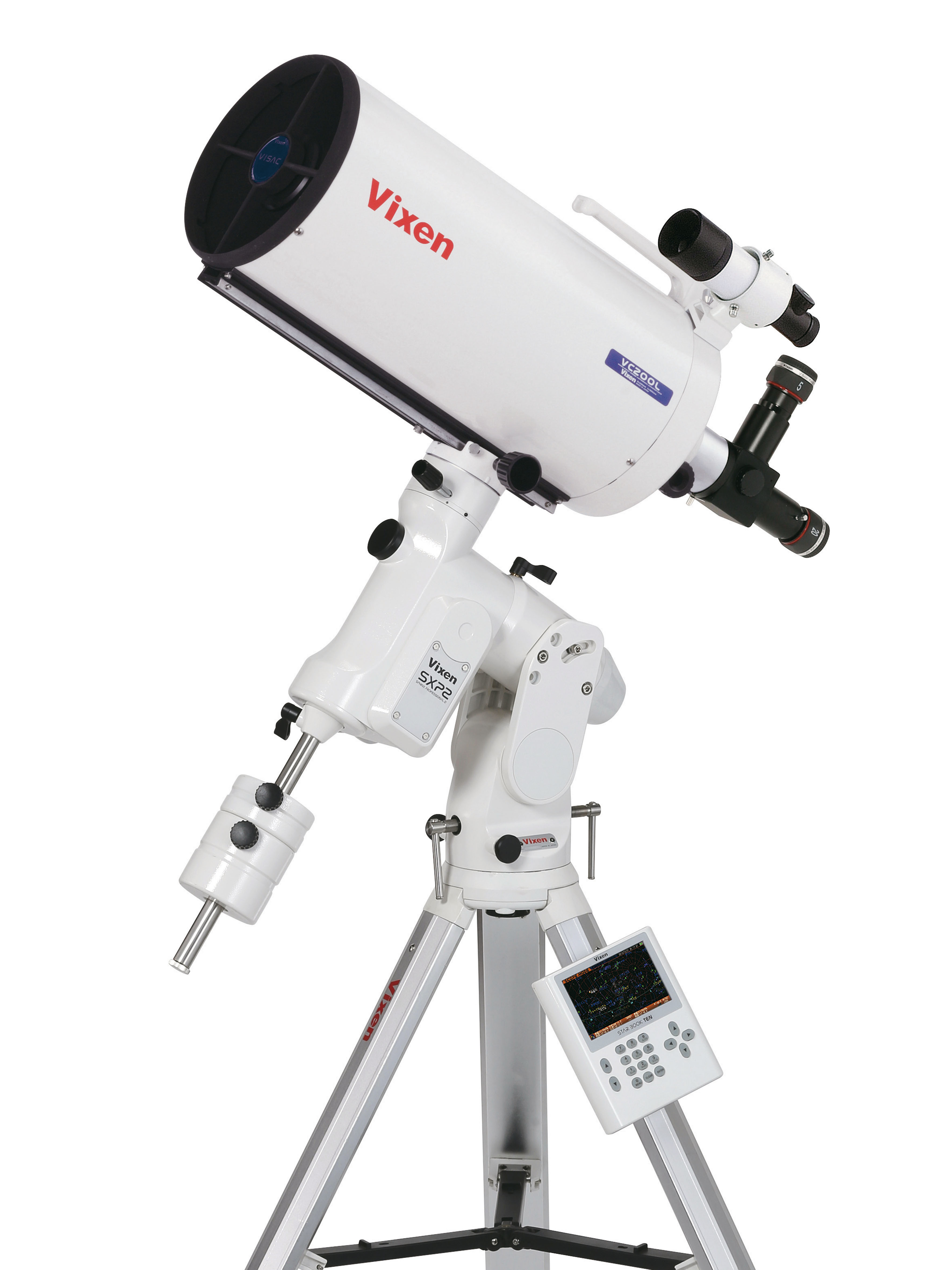 SXP2 mount with VC200L telescope This telescope set has everything you need to observe the night sky. It includes a telescope, a mount with automatic tracking, a tripod and two eyepieces. The SXP2 mount comes with the new STARBOOK TEN controller and the PFL-II polar viewfinder, which allows you to configure the mount quickly and easily via reference stars. The VC200L was designed for photography and renders a sharp and high-contrast image to the edges of the camera chip. It produces stunningly sharp images of the galaxies and nebula. The telescope set also offers outstanding visual performance and produces sharp images without chromatic aberration. It also produces impressive images of the moon's craters and Saturn's ring system. The mount can be operated fully automatically and finds celestial objects automatically.