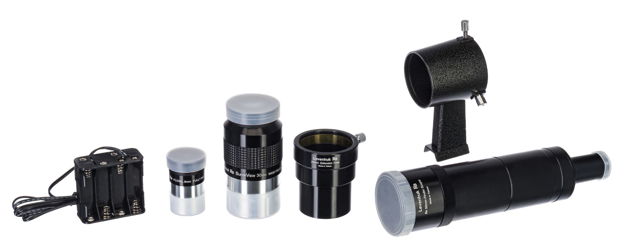 Teleskop je dodávaný s optickým príslušenstvom: dva multifokálne okuláre a hľadáčik 8x50 mm. To umožňuje okamžite začať s pozorovaním.
