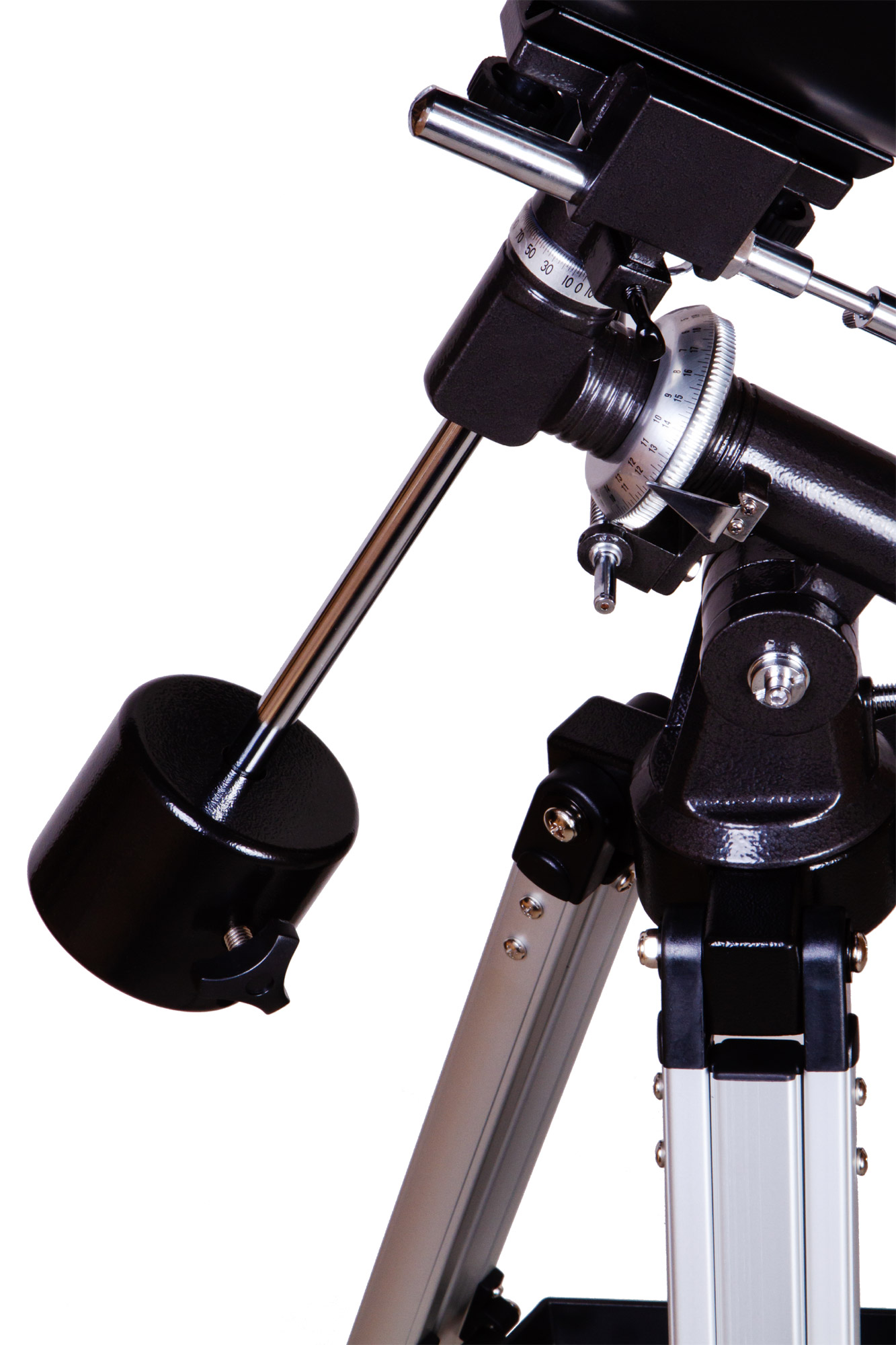 • Profesionálna rovníková montáž s niekoľkými protizávažiami s celkovou hmotnosťou 2,2 kilogramu;