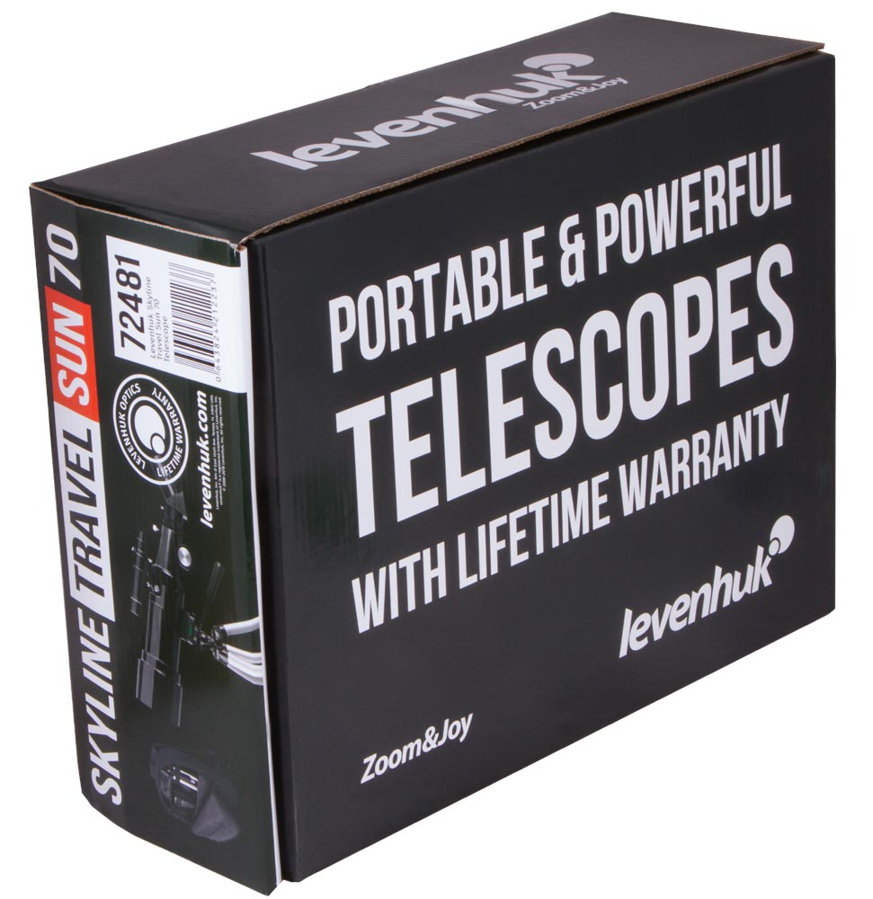 Teleskop Levenhuk Skyline Travel Sun 70 je kompaktný univerzálny prístroj s rozšírenou sadou. Má maximálne 200-násobné zväčšenie (s Barlowovou šošovkou) a apertúru 70 milimetrov, umožňuje vám sledovať so základnou detailizáciou najbližšie planéty Slnečnej sústavy a všeobecne (bez detailov) objekty z Messierova zoznamu – galaxie Miestnej skupiny, vzdialené hviezdokopy.