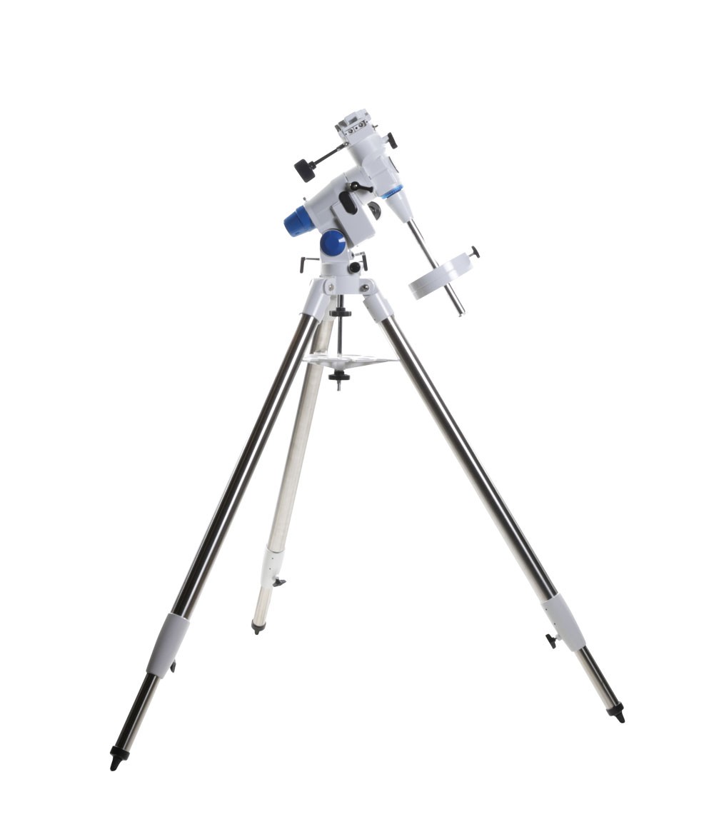 Presné nastavenie v horizontálnej aj vertikálnej osi umožňuje jednoduché a presné nastavenie na pólovú os, zatiaľ čo zabudovaná stupnica zemepisnej šírky vám pomôže rýchlo nastaviť zemepisnú šírku vášho miesta.