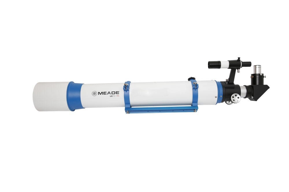 Achromatický 5" refraktor Meade LX70 R5 je vybaven vysoce kvalitním objektivem se vzduchovými mezerami, který poskytuje vysoké rozlišení a neuvěřitelný kontrast pro měsíční a planetární pozorování a pozorování hlubokého vesmíru. Jeho 120mm čistá apertura umožňuje rozlišit detaily až do 0,9 obloukové sekundy, které lze prohlížet pomocí dvou 1,25" okulárů Plössl (9 mm a 26 mm). Se svým 2" hřebenem a pastorkovým zaostřovačem a 2" diagonálou 90° je vybaven pro použití s 2" okuláry širokého pole. Optický hledáček 6x30 s nitkovým křížem umožňuje snadné a rychlé lokalizování slabých objektů.