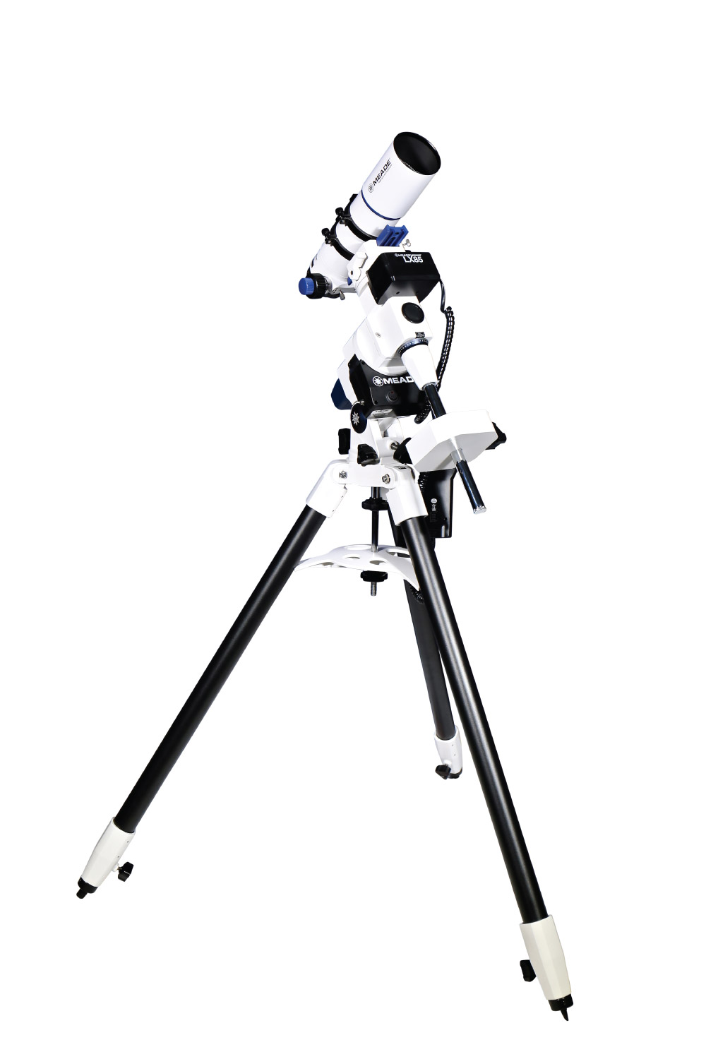 Nová řada refraktorů Meade LX85 je dodávána s přenosnou německou paralaktickou montáží GoTo. Tato montáž je vhodná pro optické tubusy o váze až 14,96 kg a umožňuje plynulé sledování. Díky vylepšenému převodovému mechanismu pohonu motoru můžete pracovat s dlouhou expozicí za použití funkce PPEC (permanent periodic error correction), což je velmi praktické pro astrofotografii. Tuto montáž lze snadno připojit k fotoaparátu s autoguiderem prostřednictvím portu autoguideru.