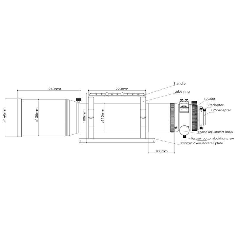 Veľký 120 mm apochromatický triplet. Výborná svetelnosť a rozlíšenie pre pokročilých amatérov.