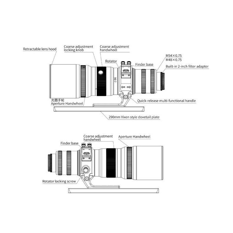 5-členný apochromát typu Petzval (séria FRA). Poskytuje ploché pole pre moderné kamery bez nutnosti ďalšieho príslušenstva.
