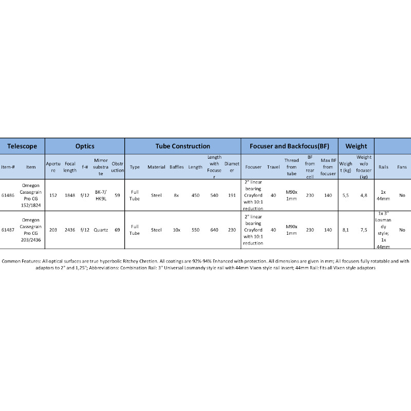 Primárne zrkadlo Omegon Cassegrain je parabolické a sekundárne zrkadlo je hyperbolické. Menej obrazových chýb: Obrazové pole je plochejšie, koma je nižšia a ostrosť poľa je výrazne vyššia. Pre vás to znamená, že môžete robiť astrofotografie s podstatne krajšími snímkami hviezd a dokonca s jemnejšími viditeľnými detailmi. Celkovo budú vaše astrofotografie vyzerať fascinujúco.