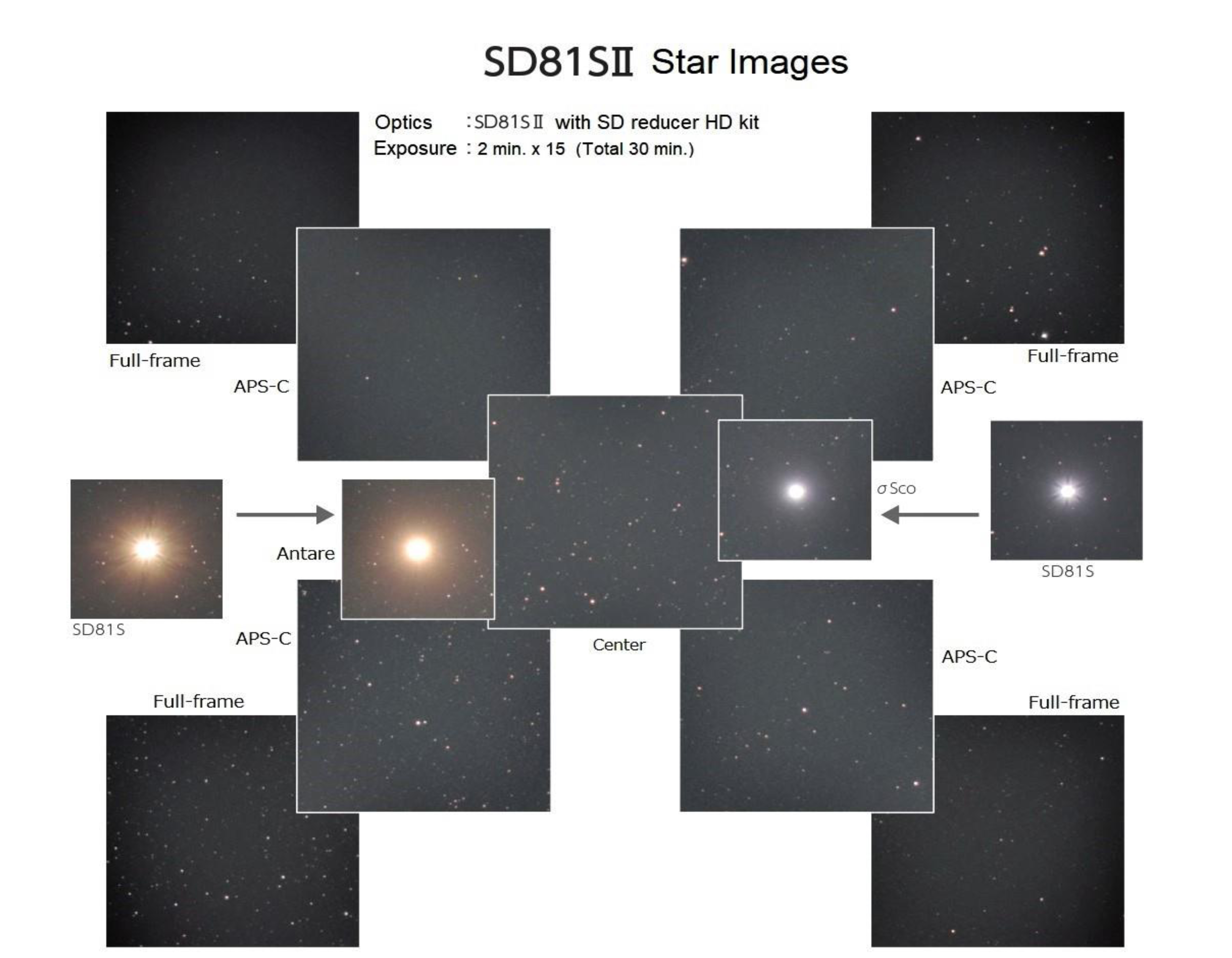 V kombinácii s novou voliteľnou súpravou SD Reducer HD alebo SD Flattener HD (nie je súčasťou dodávky) umožňuje tento refraktorový teleskop osvetlenie s obrazovým kruhom 44 mm pre full-frame zrkadlovky.