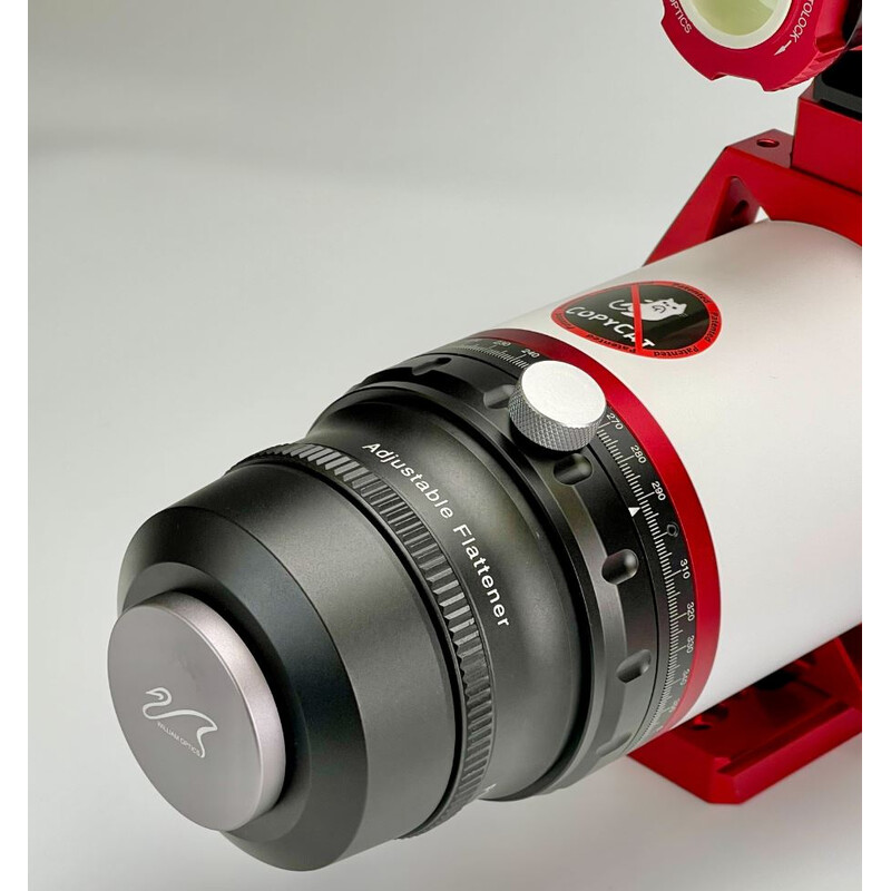 - Pre astrofotografiu odporúčame sploštovač/reduktor Flat6AIII od spoločnosti William Optics. Optika poskytuje ploché pole s rovnakou polohou zaostrenia aj pre full-frame fotoaparáty. Pomocou držiaka s hranolovou lištou integrovaného v rukoväti môžete svoj model Gran Turismo vybaviť vodiacim ďalekohľadom, ktorý možno použiť ako hľadáčik alebo vodiaci ďalekohľad.