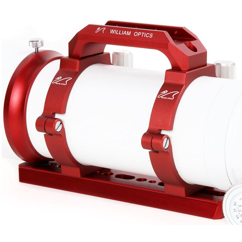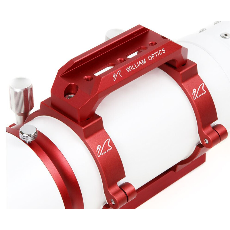 Na rukoväti na prenášanie sa nachádza montáž na vodiace krúžky alebo hľadáčik s hranolovou lištou od William Optics.