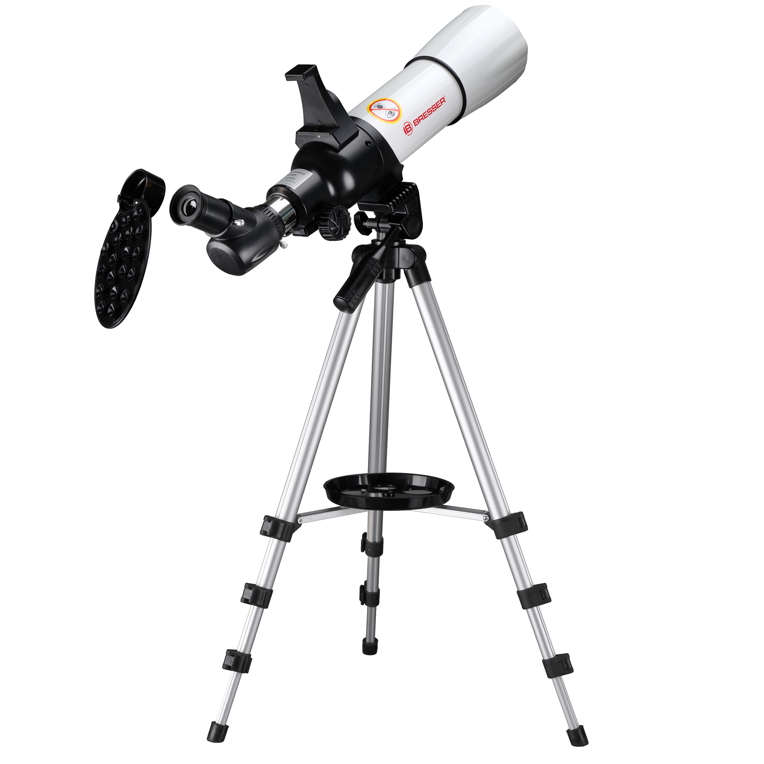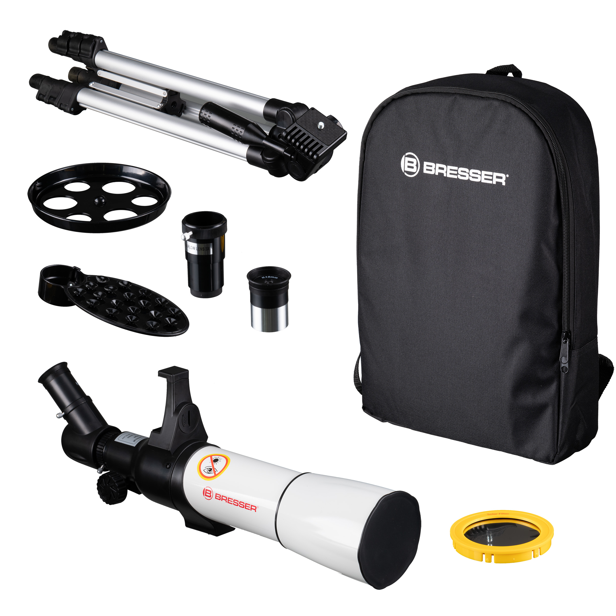 BRESSER SpaceRacer 70/400 je začiatočnícky achromatický refraktor, navrhnutý pre jednoduché a zábavné astronomické aj pozemské pozorovania. Optika s priemerom 70 mm a ohniskovou dĺžkou 400 mm poskytuje jasné a kontrastné obrazy Mesiaca, planét (prstence Saturna, mesiace Jupitera), hviezdokôp ako Plejády, ako aj Slnka pri použití dodaného objektívového slnečného filtra. Vďaka integrovanej aplikácii rozšírenej reality (AR) so smartfónom je vyhľadávanie súhvezdí a objektov intuitívne a vzdelávacie. Jednoduchá azimutálna montáž, držiak na smartfón a kompaktný batoh robia z tohto teleskopu ideálnu voľbu pre mladých astronómov a rodiny, ktoré začínajú s pozorovaním nočnej oblohy.