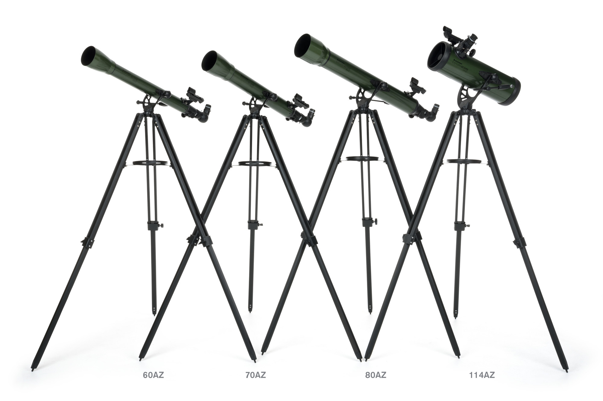Die ExploraScope-Teleskope sind Einsteigerteleskope, die vor allem für die unkomplizierte Erdbeobachtung gedacht sind – aber auch für den schnellen Blick in die Sterne und auf den Mond geeignet sind. Die azimutale Montierung wurde für mehr Stabilität neu entwickelt, ebenso wie die Feineinstellung der Höhenachse. Das Stativ besteht aus beschichtetem Aluminium und ist so widerstandsfähiger gegen Abnutzung.