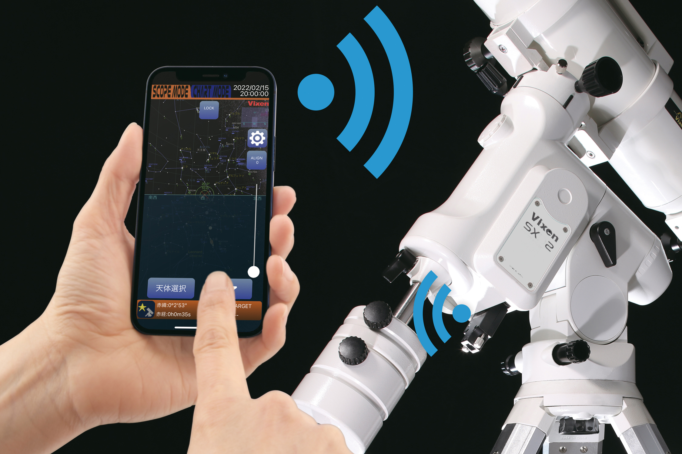 Pomocou aplikácie pre smartfóny "STAR BOOK Wireless" (bezplatne ) sa môžete pohybovať po oblohe bez akýchkoľvek káblov. Aplikácia pre smartfóny "STAR BOOK Wireless" premení váš smartfón alebo tablet na ovládač pre rovníkovú montáž v priebehu okamihu. Oneskorenie odozvy montáže, ktoré sa považuje za najväčšiu nevýhodu bezdrôtových pripojení, sa znížilo na úroveň porovnateľnú s káblovými modelmi.