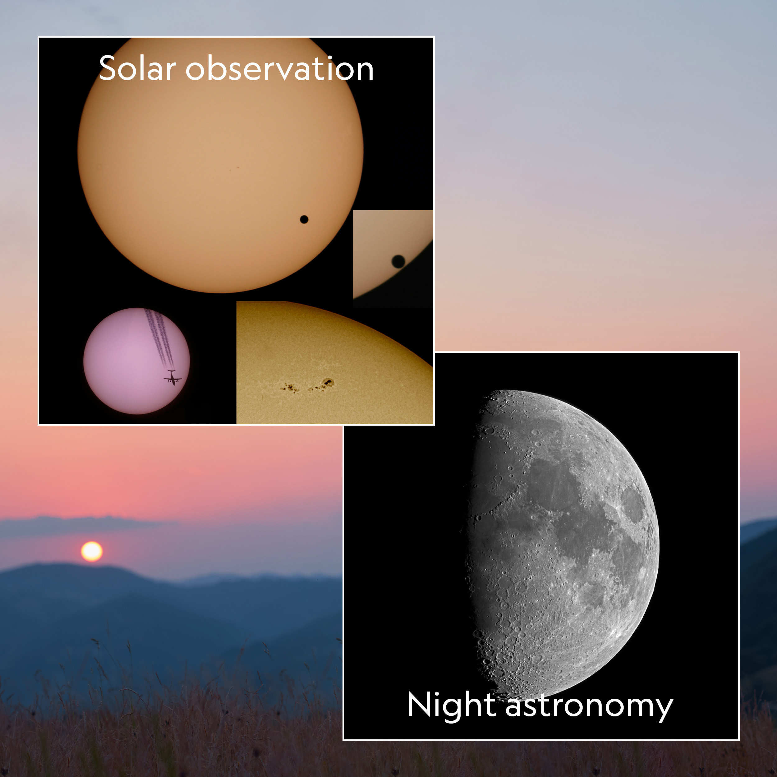 Tento testovaný slnečný filter umožňuje používať teleskop nielen na nočné pozorovanie vesmíru, ale umožňuje aj bezpečné pozorovanie Slnka. Presnejšie povedané, ide o slnečný filter s bielym svetlom, pomocou ktorého môžete pozorovať pohyby slnečných škvŕn, prechody planét, zatmenia Slnka a prelety lietadiel atď.