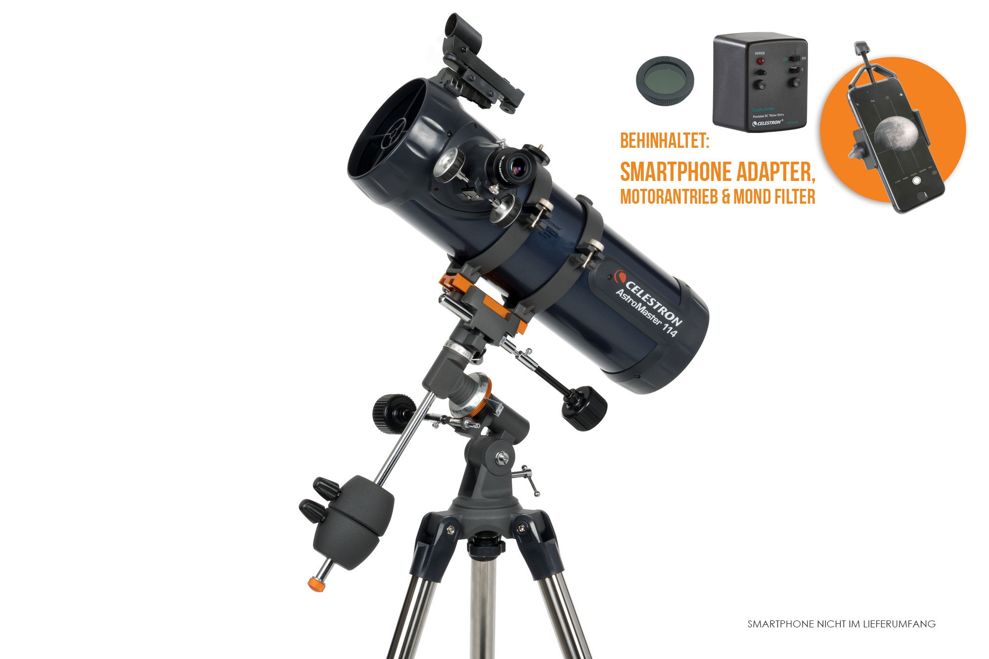 Dalekohľad AstroMaster ponúka nielen úchvatné pohľady na Mesiac, Saturn s jeho prstencom, Jupiter s jeho pásmi a mesiacmi, hmloviny a hviezdokopy. S voliteľným slnečným filtrom môžete pozorovať aj slnečnú aktivitu. Ak vás menej zaujímajú členovia slnečnej sústavy a viac jasnejšie objekty hlbokej oblohy, ako sú galaxie a hmloviny, odporúčame jeden z newtonovských reflektorov s väčšou svetelnou clonou.