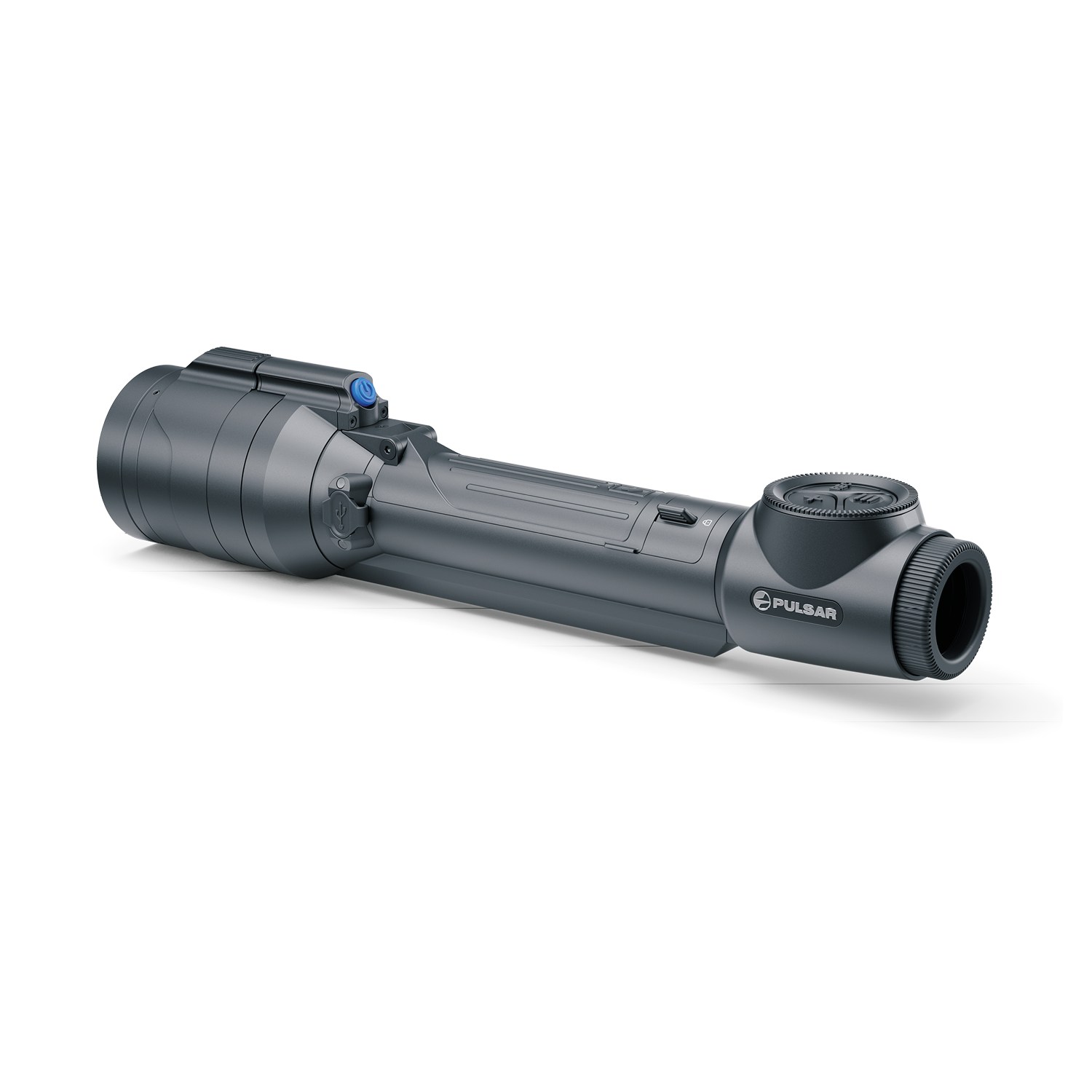 Tento puškohľad napájaný vymeniteľnou a nabíjateľnou batériou Pulsar APS 5T poskytuje až 7 hodín prevádzky už po jednom nabití (v závislosti od teploty). Reliéfny dizajn krytu batérie pomáha používateľovi presne identifikovať správnu polohu batérie, čo znamená, že vybratie a výmena batérie je rýchla a jednoduchá aj v úplnej tme. Rýchly zámok vysúvania tiež zabezpečí rýchle a bezproblémové vybratie a výmenu batérie. Uvoľnením tohto zámku sa otvorí a zdvihne kryt batérie, ktorý sa nachádza na hornej strane puzdra puškohľadu.
