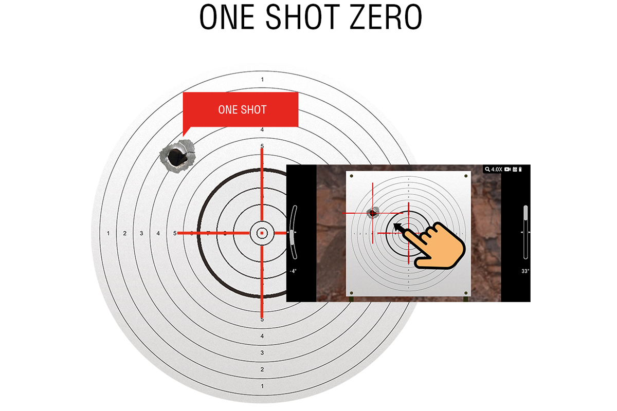 ONE SHOT ZERO - táto skvelá funkcia sa postará o to, aby nastreľovanie bolo jednoduché a rýchle. Stačí vystreliť na terč, v nastaveniach otvoriť funkciu Reticle a na základe osí X a Y nasmerovať zámerný bod tam, kde sa nachádza prvý vstrel. Následné uloženie zabezpečí presnú streľbu. Pre 100% istotu je možné vykonať skúšobný výstrel.