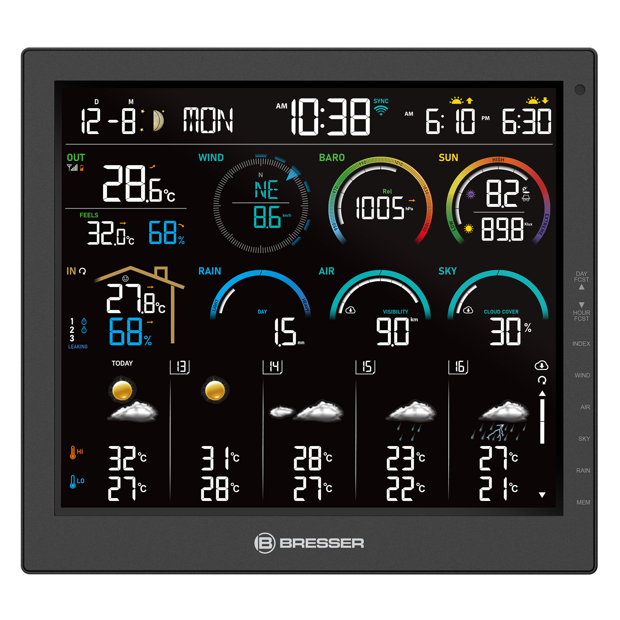 S meteostanicou BRESSER 4CAST 10" WLAN vrátane senzora 8 v 1 sa už tak ľahko nezapotíte pri aktuálnej (vnútornej) klíme. Meteostanica WLAN s prehľadným 10-palcovým displejom (25,4 cm) vám na prvý pohľad ukáže všetky dôležité klimatické údaje. Skutočne špičkové funkcie: podrobná predpoveď počasia a WBGT s úrovňou tepelného stresu pre optimálnu ochranu zdravia počas horúcich dní. A vďaka pripojeniu WLAN máte svoje osobné informácie o počasí vždy na displeji, nech ste kdekoľvek.
