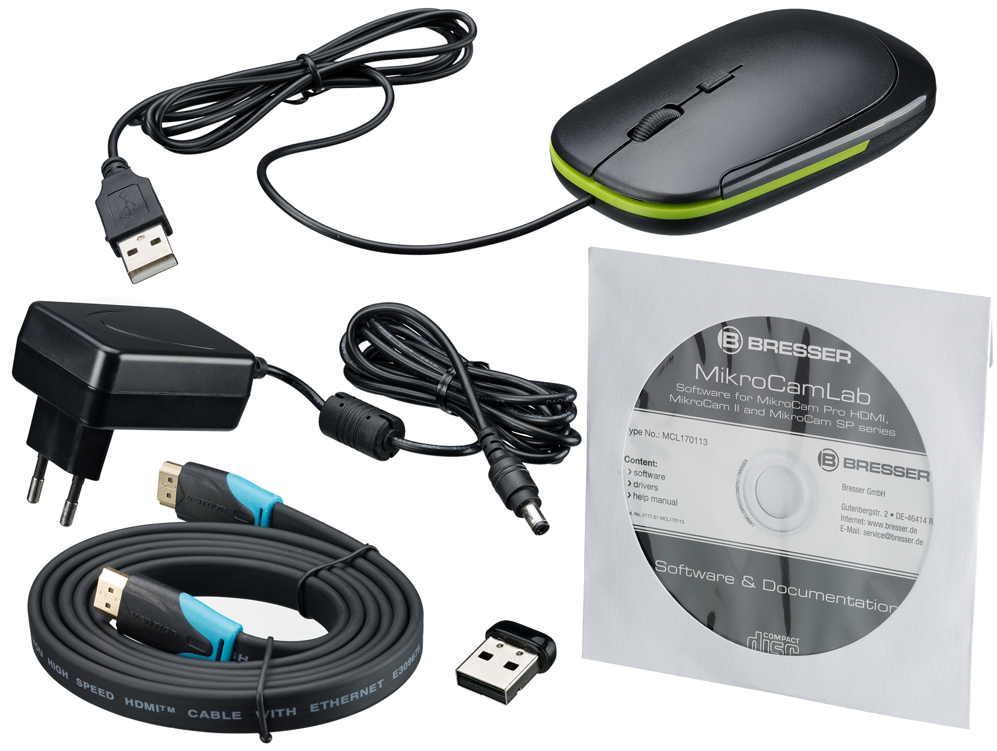 Okrem toho môže kamera poskytovať obraz z mikroskopu aj v bezdrôtovej sieti prostredníctvom modulu WiFi. Ak je kamera pripojená cez rozhranie HDMI, snímky a videá možno zaznamenávať priamo na kartu SD (nie je súčasťou dodávky). Pripojenie k počítaču prostredníctvom USB však už nie je pri tomto modeli k dispozícii. Na tento účel odporúčame model MikroCam Pro HDMI 5914180.