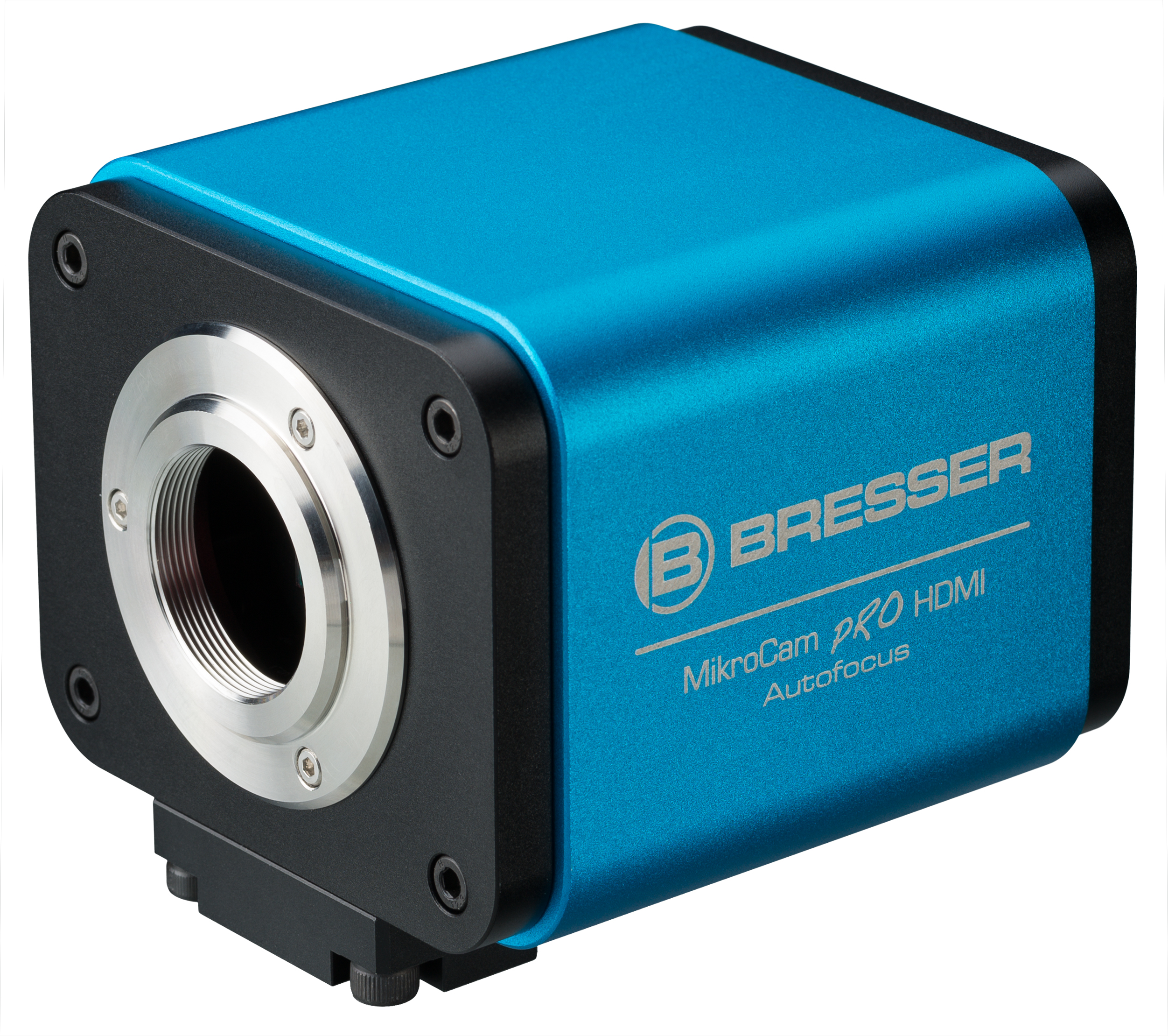Kamera BRESSER MikroCam PRO HDMI Autofocus zaujme vynikajúcou kvalitou obrazu a používateľsky prívetivým ovládaním. Obraz z mikroskopu prenáša naživo a bez oneskorenia ako signál HDMI s rozlíšením Full HD na monitor alebo televízor. Voliteľný 11'' monitor HDMI (č. výr. 5914110) možno namontovať priamo na kameru a poskytuje brilantný obraz a vysoký kontrast. Veľmi vysoká citlivosť na svetlo zaručuje dobrú kvalitu obrazu aj pri slabom osvetlení. Tento model sa preto odporúča najmä na snímanie tmavého poľa alebo fázového kontrastu.