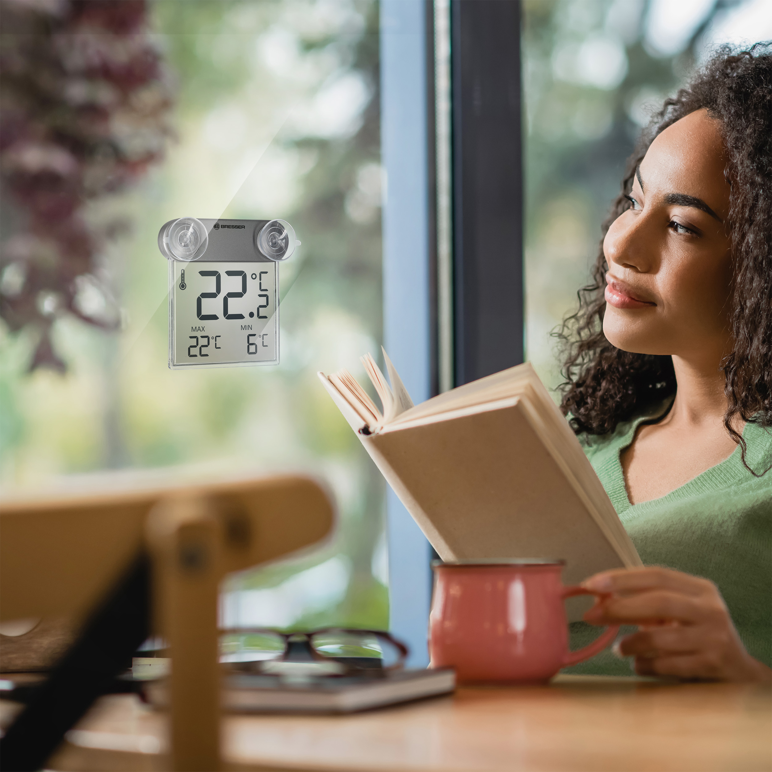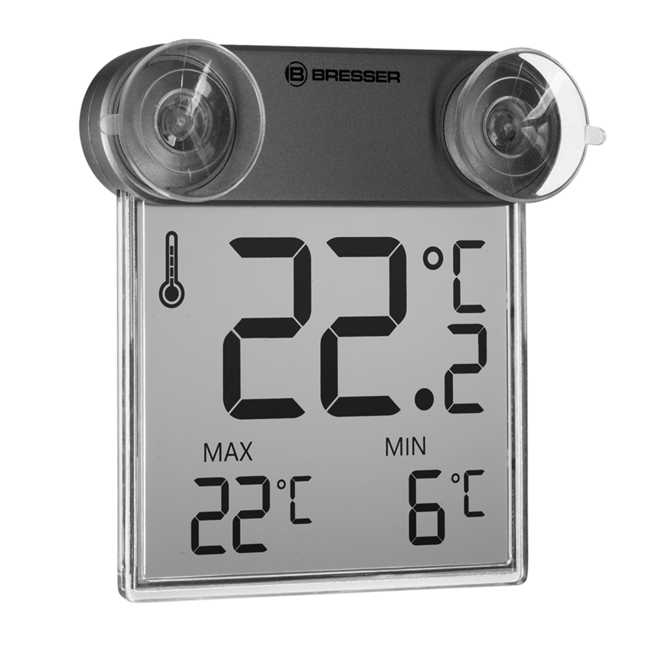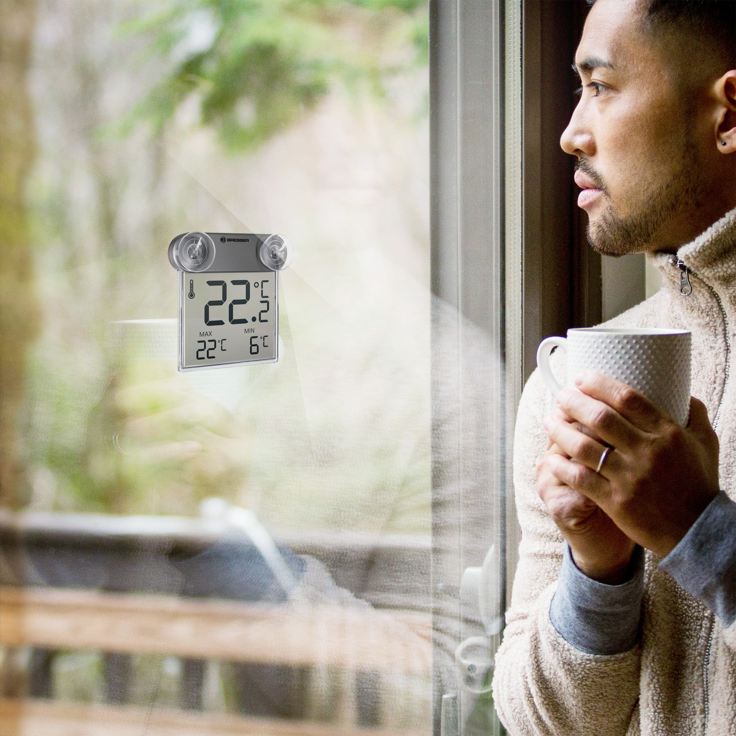 S okenným teplomerom BRESSER Translucidus WT môžete mať prehľad o aktuálnej vonkajšej teplote vždy, keď sa pozriete von. Prehľadné zobrazenie vám rýchlo pomôže rozhodnúť sa, či máte zapnúť alebo vypnúť kúrenie alebo klimatizáciu. Na displeji máte vždy k dispozícii aj maximálne a minimálne namerané hodnoty s prístrojom na meranie teploty. Ideálne na sledovanie vývoja teploty.