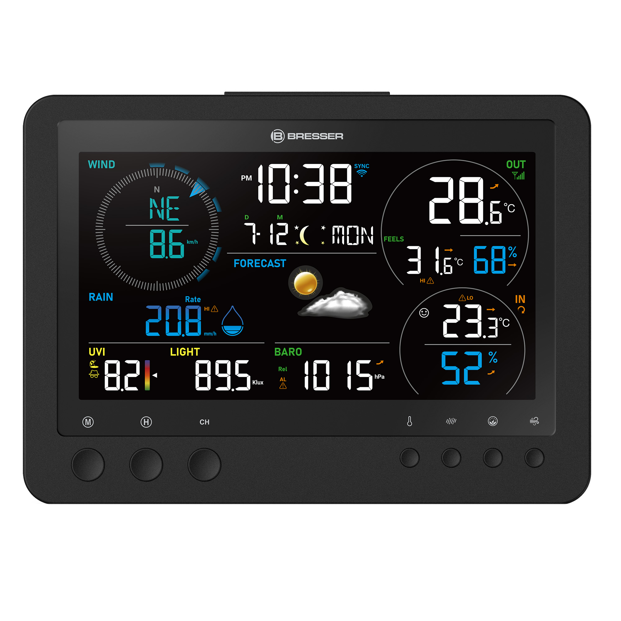S profesionálnou meteostanicou BRESSER 8 v 1 WLAN Bise si môžete zachovať chladnú hlavu za každého počasia. Táto moderná meteostanica WLAN vykúzli všetky dôležité klimatické a časové údaje na prehľadnom 7,4-palcovom displeji (18,8 cm). Obzvlášť užitočné: WBGT s úrovňou tepelného stresu vám poskytuje spoľahlivú orientačnú hodnotu, takže vám nikdy nedôjde dych ani počas horúcich letných dní. A vďaka pripojeniu Wi-Fi máte vždy prístup k svojim údajom - či už cestujete, alebo relaxujete na gauči!
