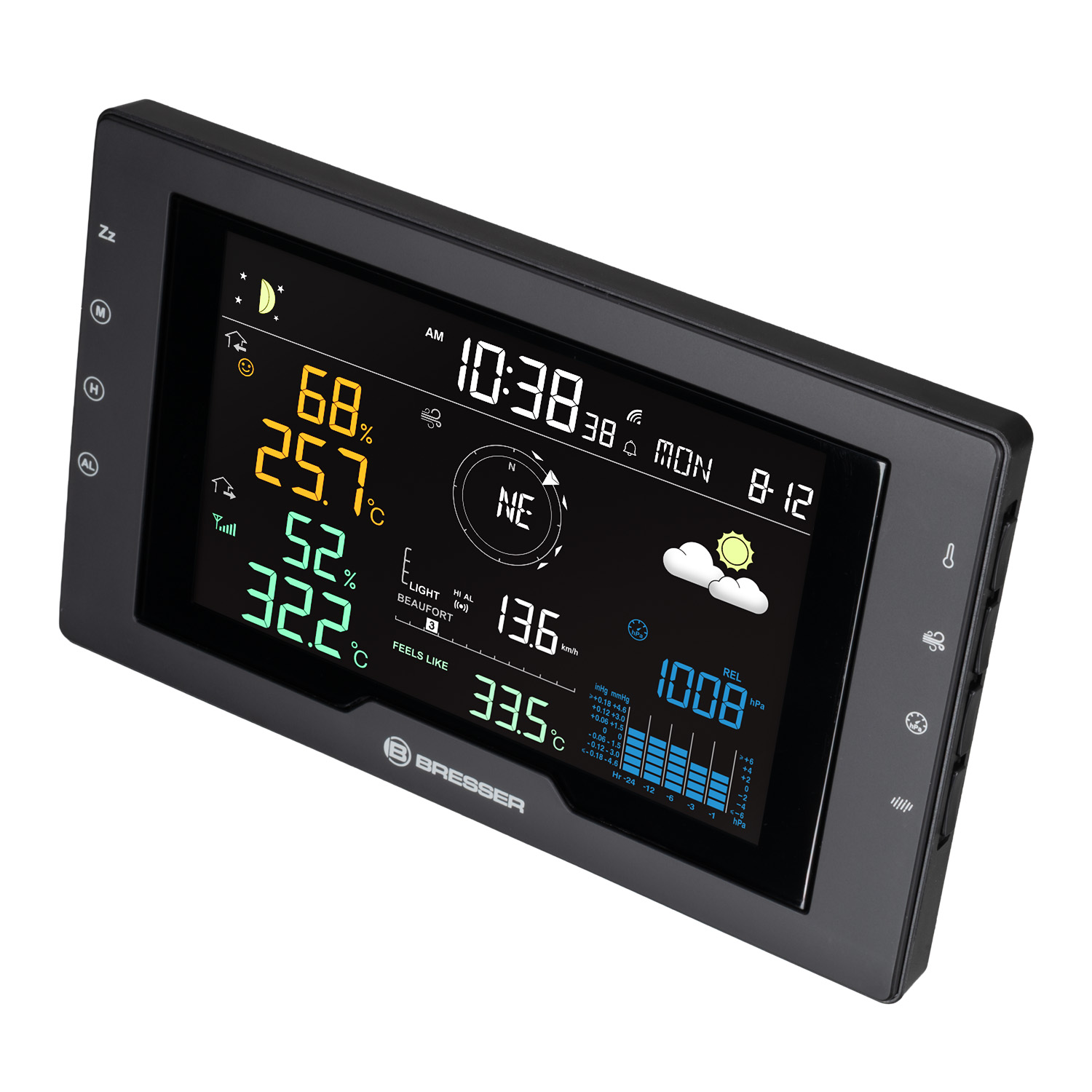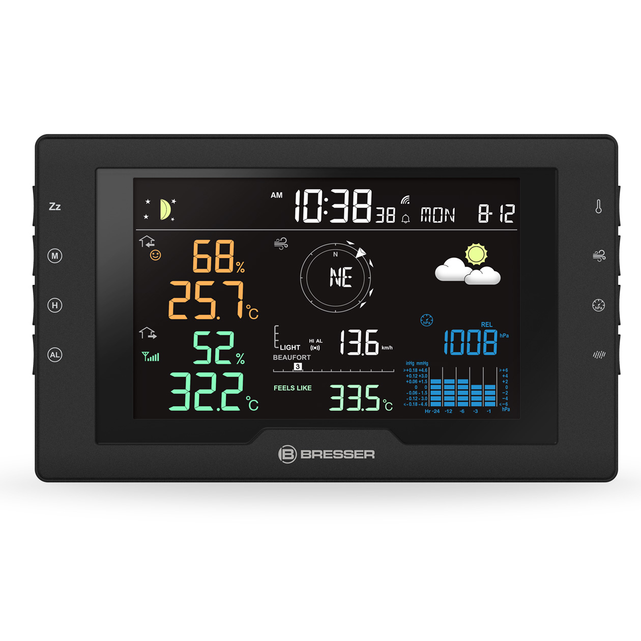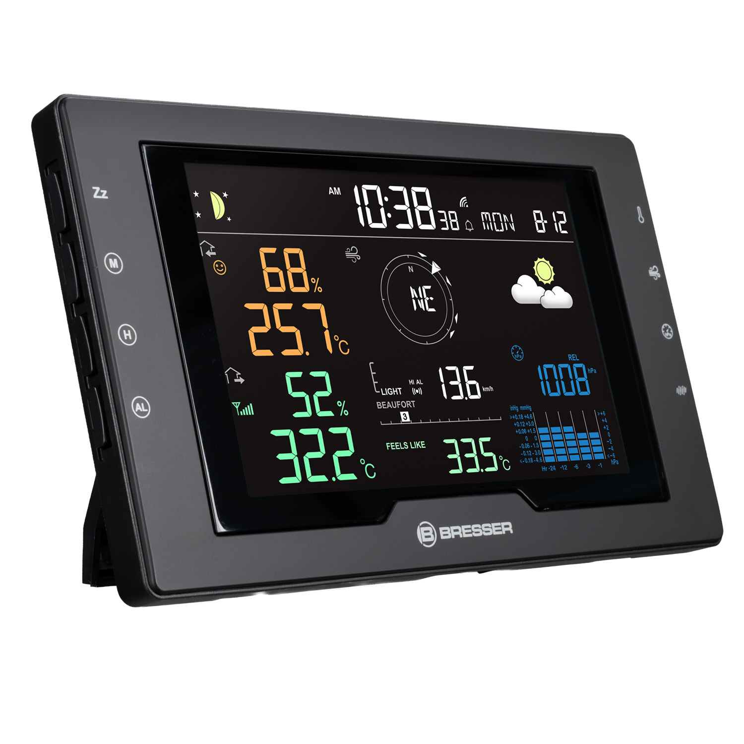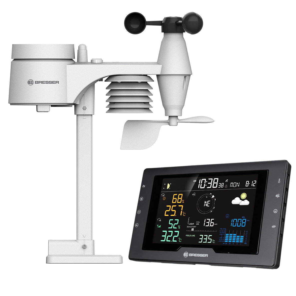 S profesionálnou meteostanicou BRESSER Azores s vonkajším senzorom 5 v 1 môžete mať vždy chladnú hlavu. Vďaka spoľahlivým údajom z vysokokvalitného bezdrôtového snímača a praktickým funkciám základňovej stanice sa v okamihu stanete skutočným odborníkom na klímu a s istotou zvládnete každú poveternostnú situáciu.