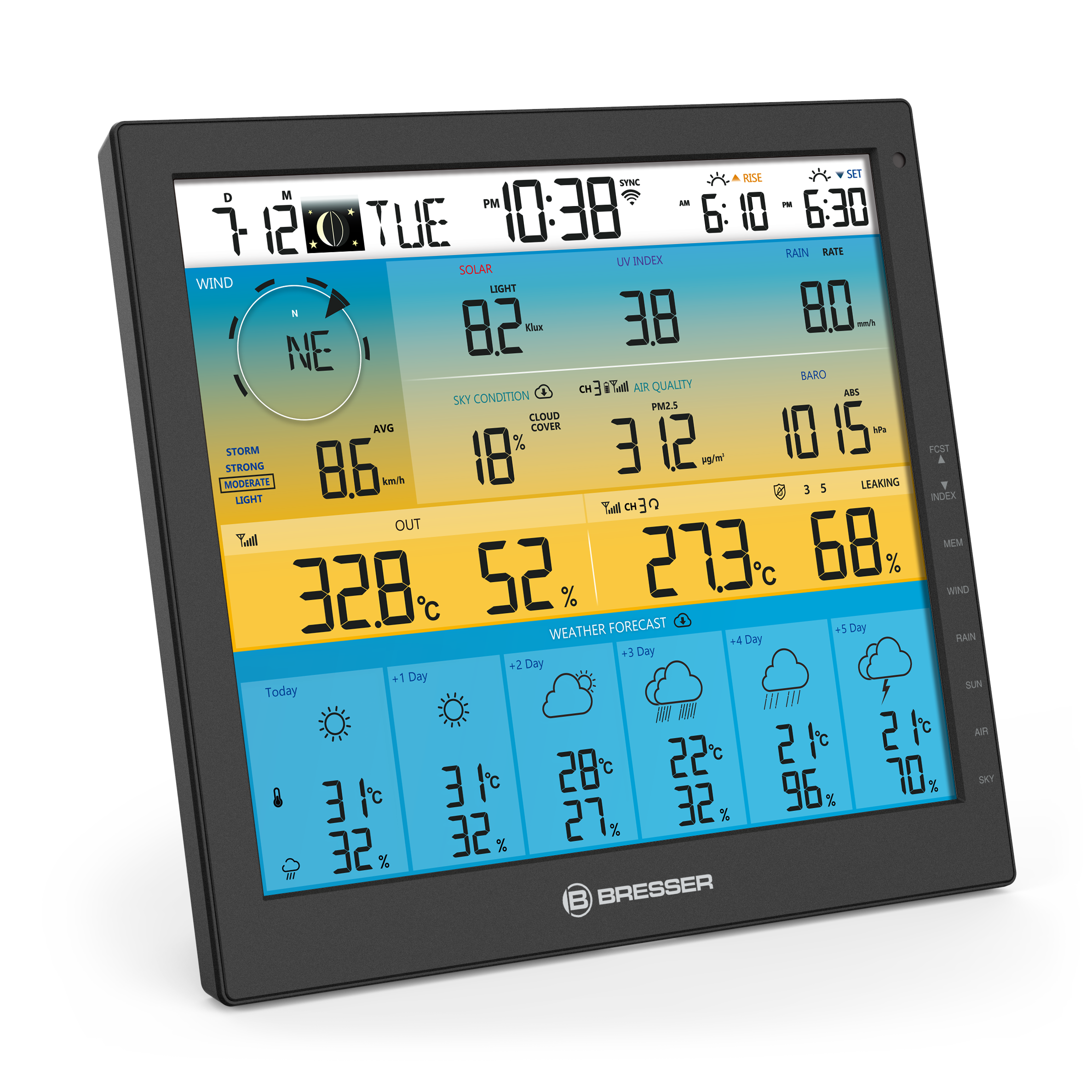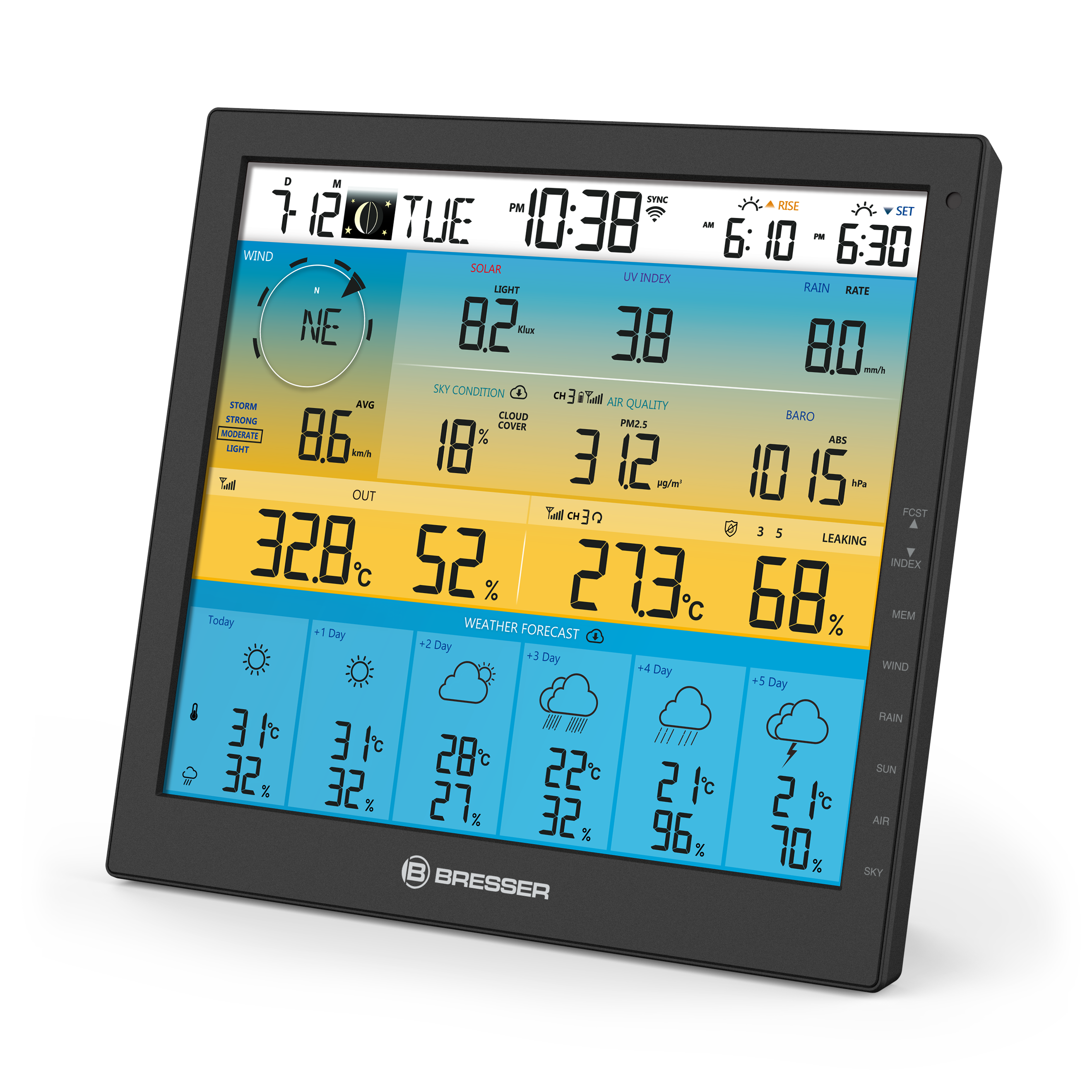 Ideálne pre bytové domy alebo priestranné kancelárie - s prídavnou základňovou stanicou pre vašu existujúcu 6-dňovú meteostanicu BRESSER 4CAST PRO SF WLAN môžete zobrazovať namerané údaje z vášho solárneho vonkajšieho senzora 7 v 1 (nie je súčasťou dodávky) na dvoch miestach na obrazovke. A to v podobe elegantného farebného displeja s uhlopriečkou 25,4 cm (10") . Stačí pripojiť snímač k prídavnej základňovej stanici - a namerané údaje o teplote, vlhkosti, rýchlosti vetra, smere vetra, zrážkach, úrovni UV žiarenia a intenzite svetla zaujmú svoje obvyklé miesto na veľkom displeji. Prostredníctvom internetového pripojenia máte na prídavnom displeji veľmi rýchlo k dispozícii aj 6-dňovú predpoveď počasia, ako aj viditeľnosť a oblačnosť zo servera Pro Weather Live .